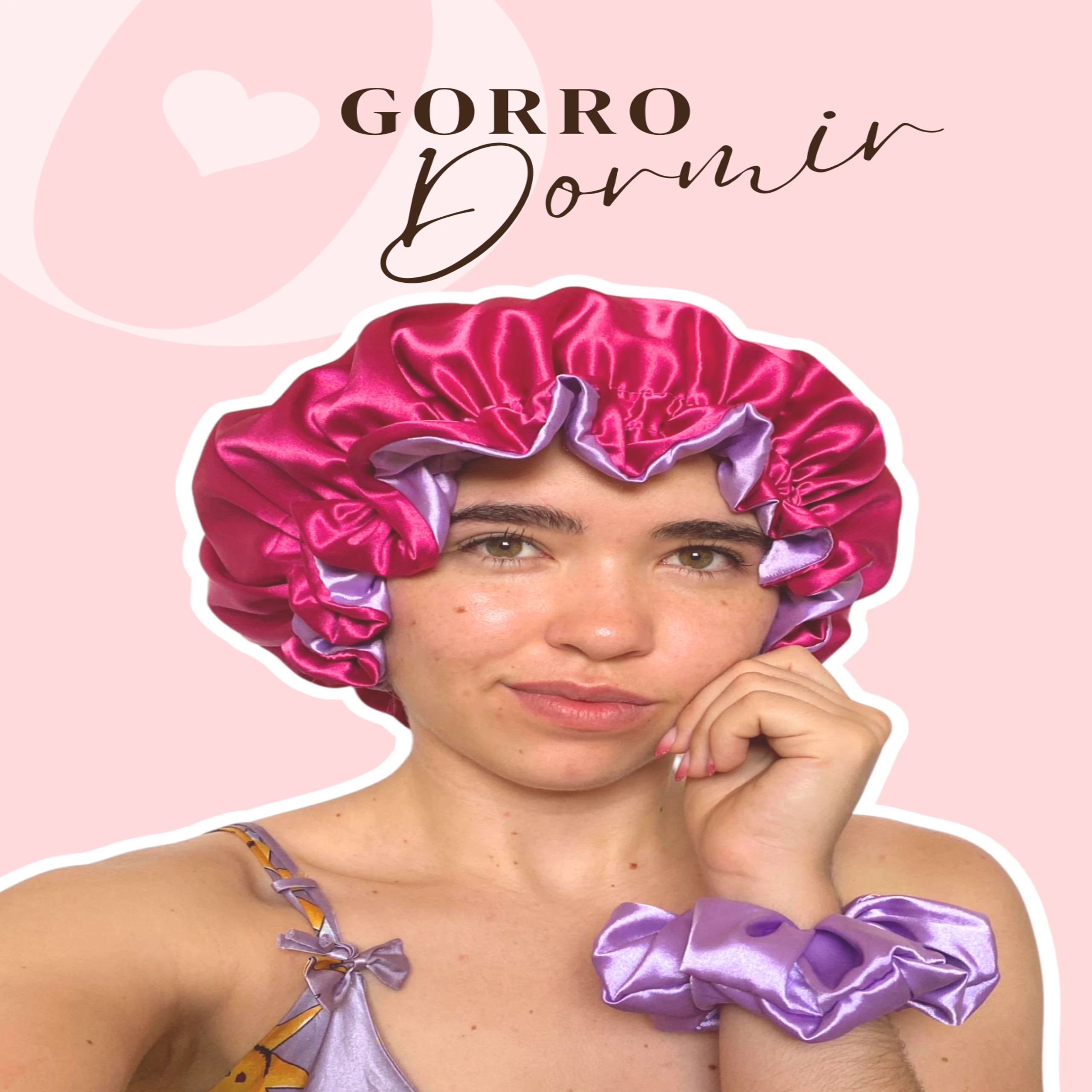 Gorro para dormir doble faz elaborado con satín licrado , perfecto para evitar el friz , enredos y cabellos maltratados. Te incluye scruchies de obsequio.