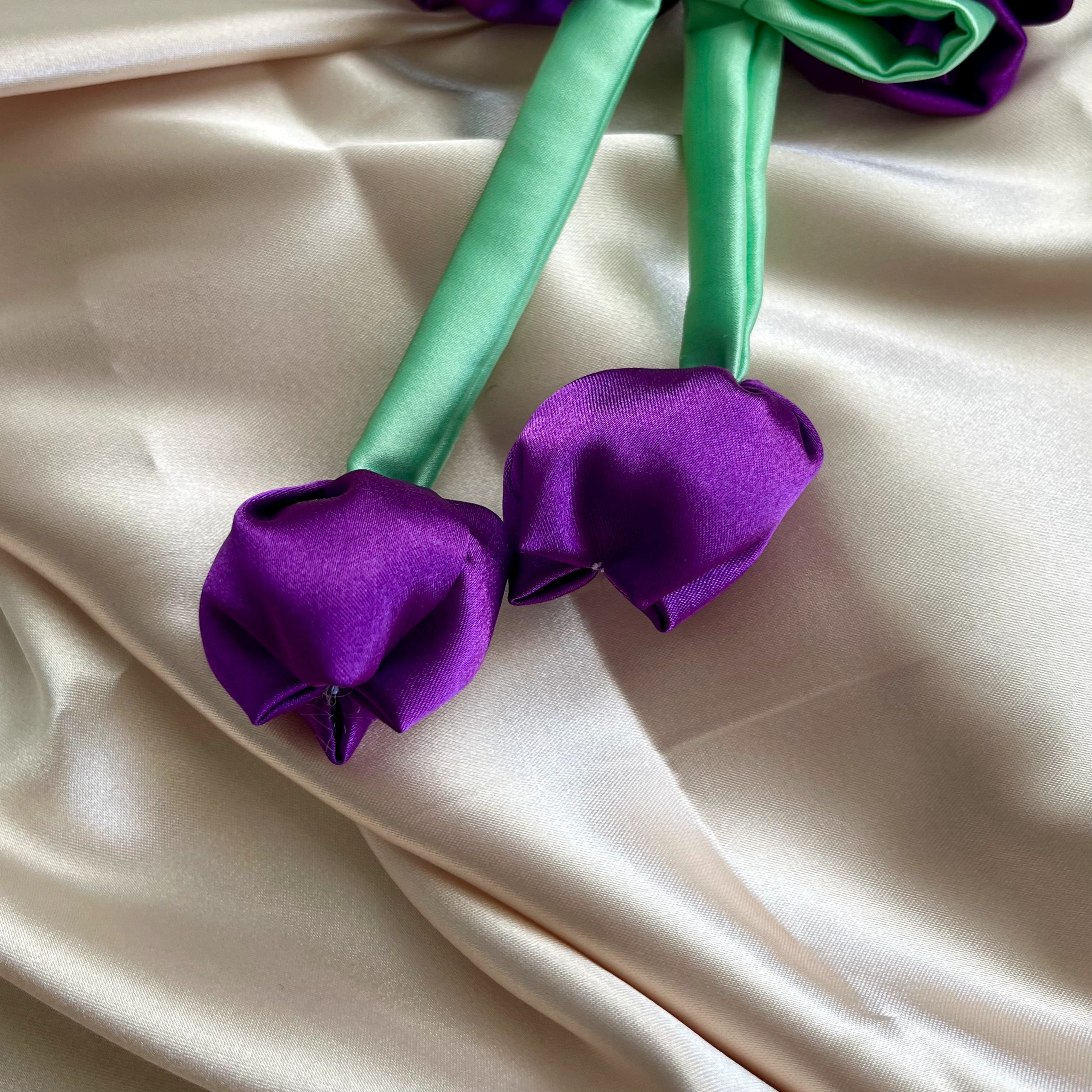 Scrunchies infaltables para tu día a día ,  elaboradas con tela de satin con flores de tulipan y de alta calidad, tamaño sutil especializadas para el cuidado de tu cabello evitando el frizz y enrredos.