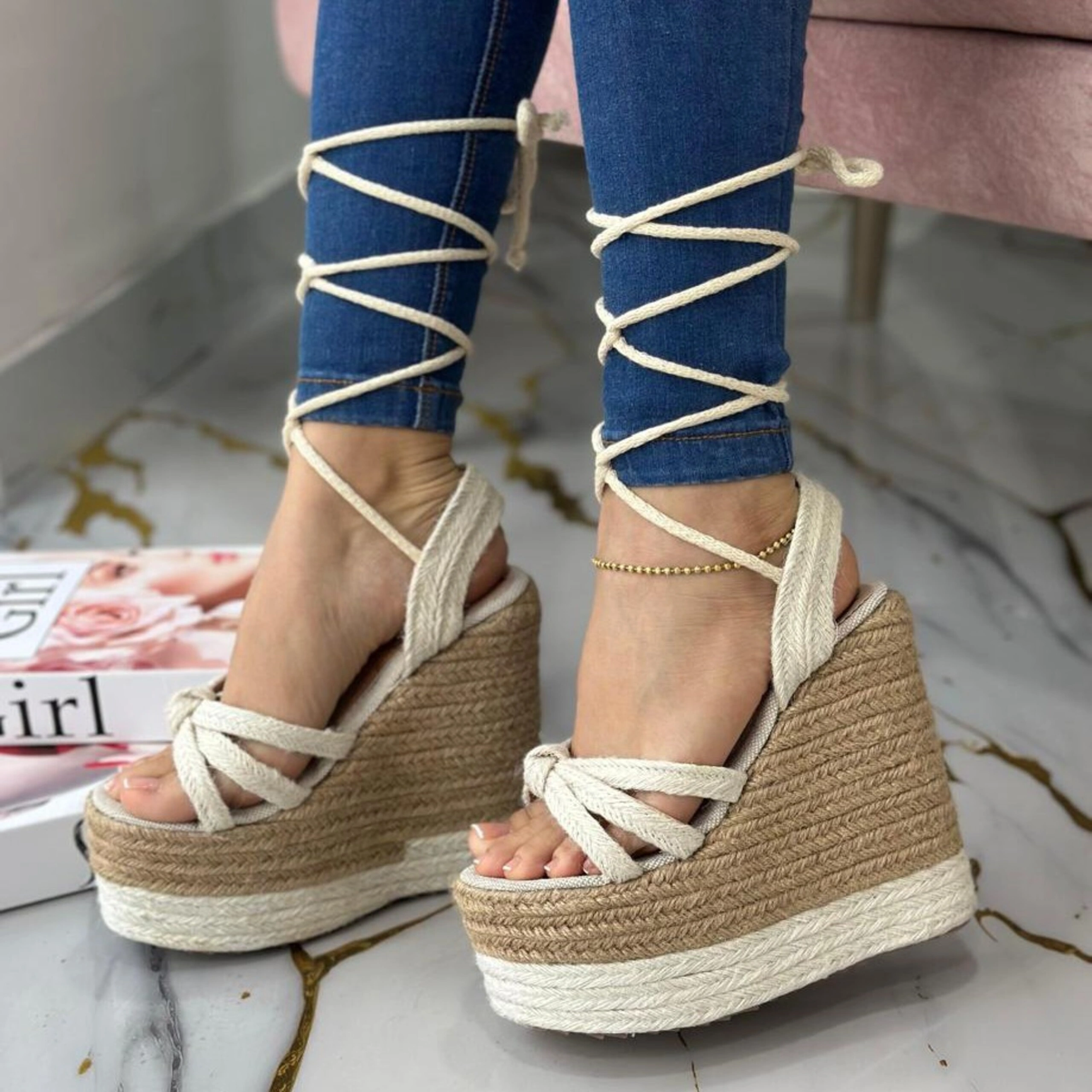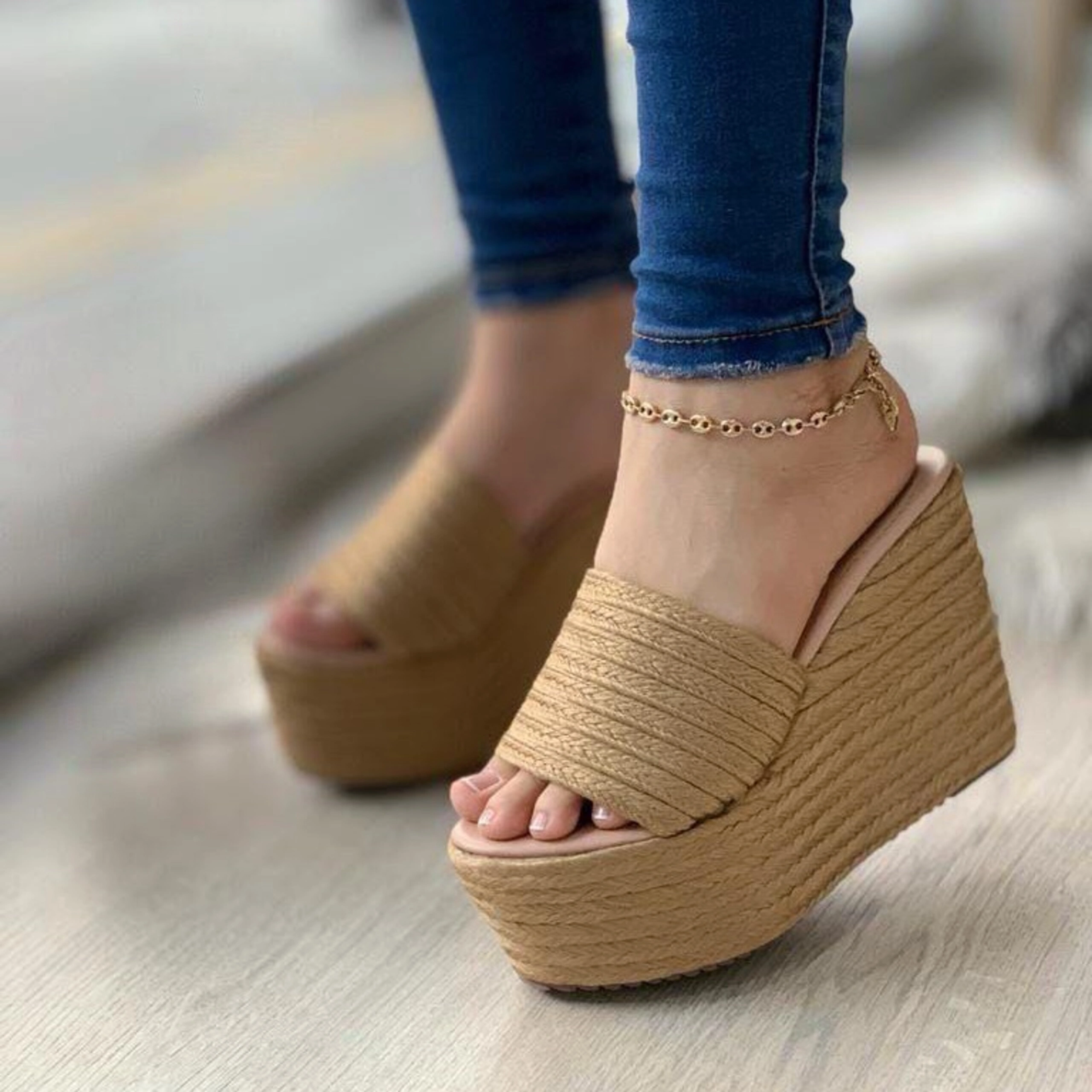 Sandalia capellada en material sintético con planta forrada en yute, capellada en material sintético y yute.